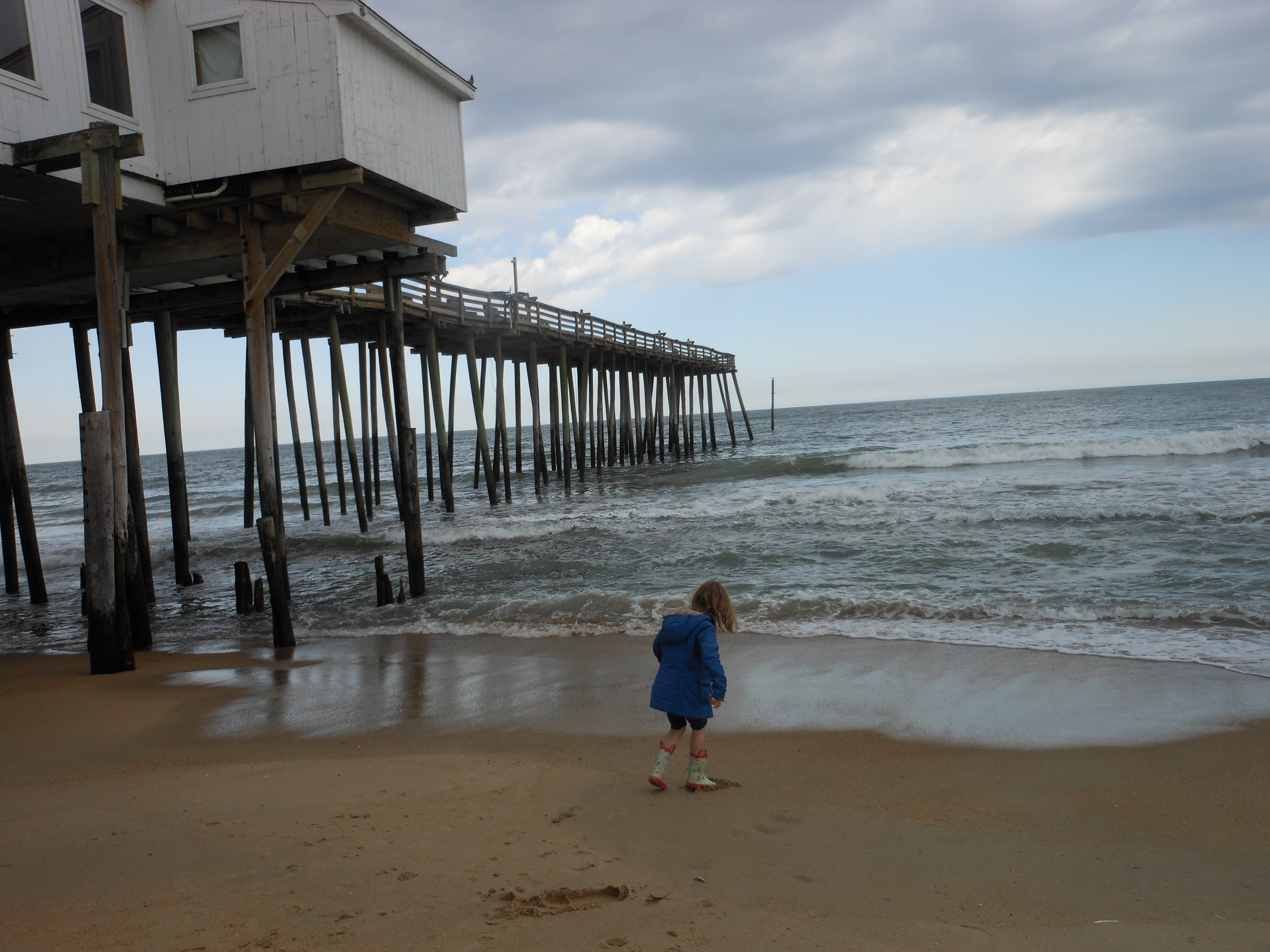 With my older daughter home from school for the week, my mom and stepdad braved the long car drive down to the Outer Banks with me and the girls, for a few days in a hotel by the beach. Though the girls wanted to spend most of our visit at the indoor pool (and I in the adjoining hot tub), we visited our usual summer haunts: Kelly’s for seafood and warm sweet potato biscuits, Duck’s Cottage for books and coffee, and The Kids’ Store for toys.